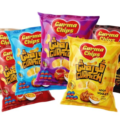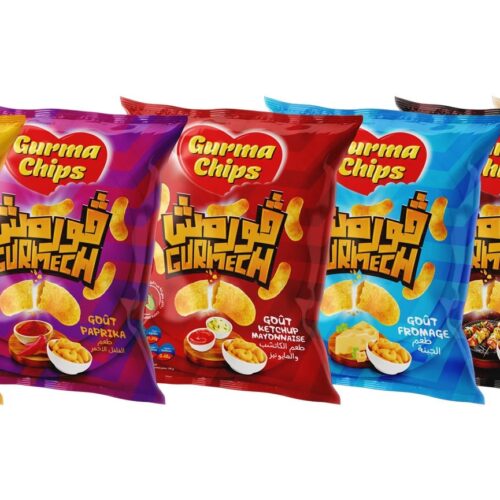 تصميم عبوة GURMECH ڨورما شيبس. تصميم نابض بالحياة وجذاب يبرز كل نكهة من نكهات ڨورما شيبس.