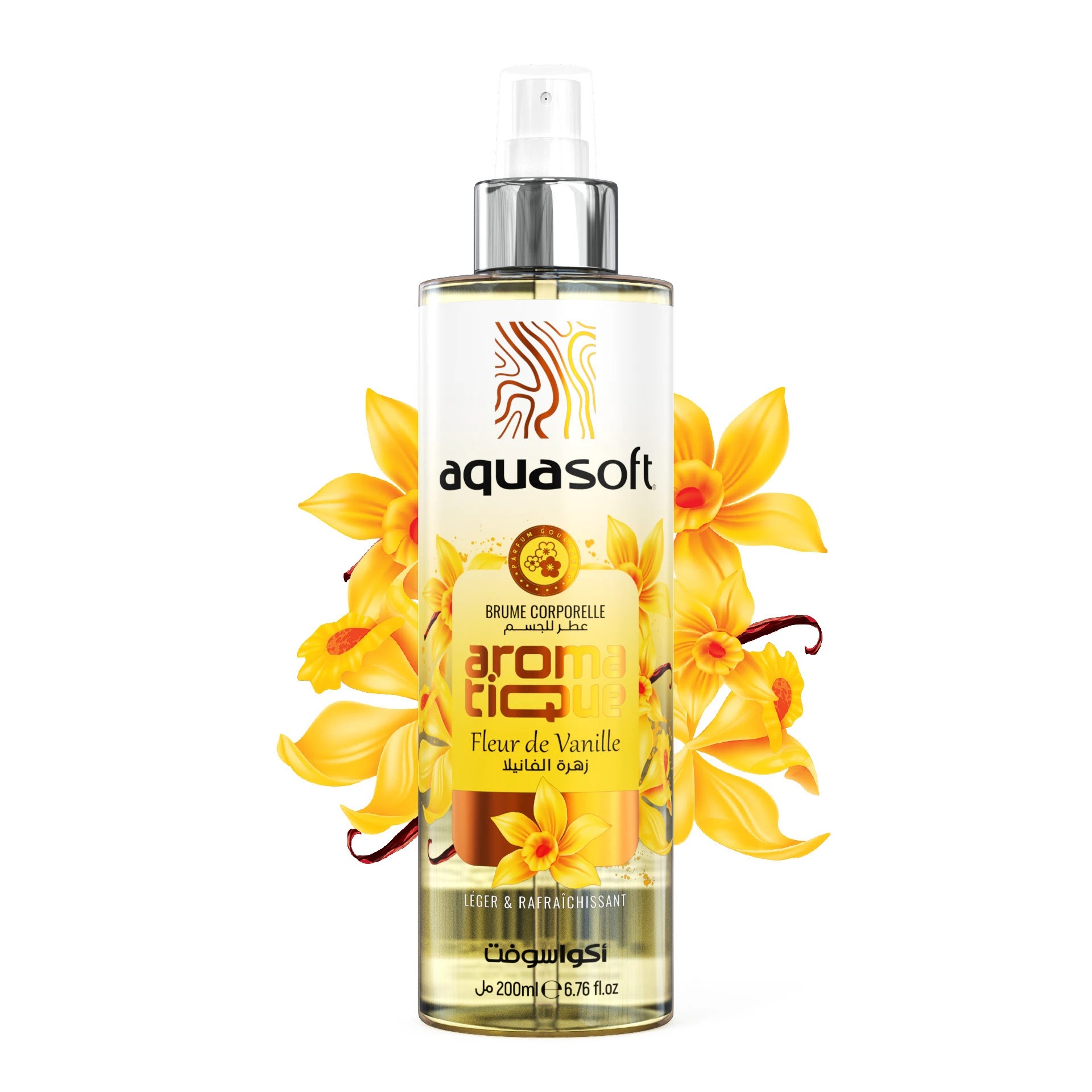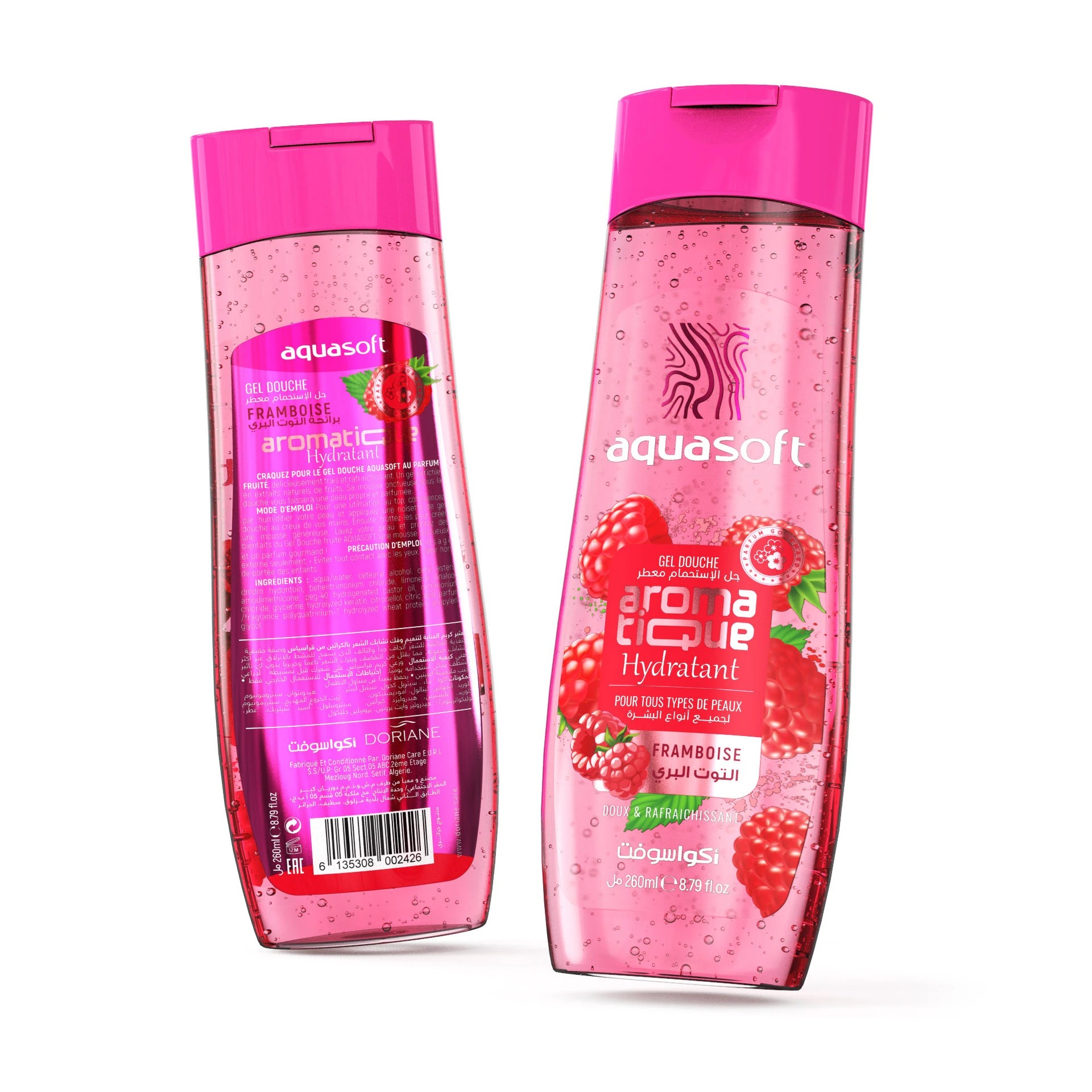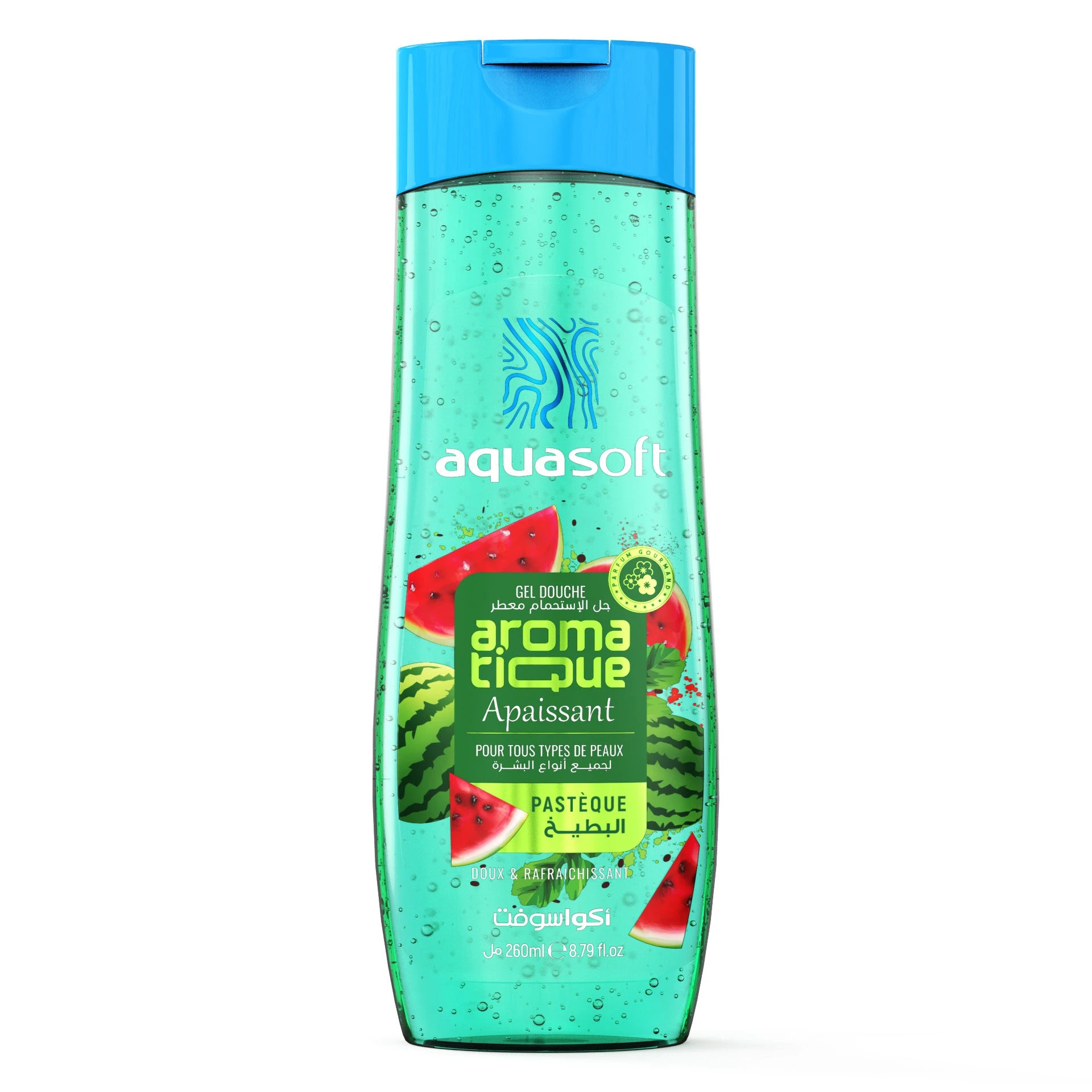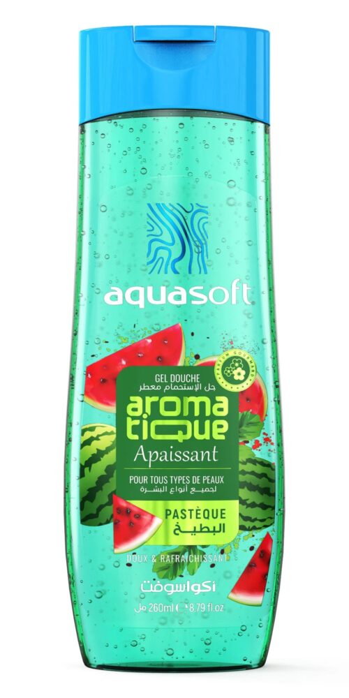 Packaging réalisé pour la gamme de produits cosmétique Aromatique Aquasoft, une gamme de soins corporels qui allie fraîcheur, douceur et hydratation. Le design met en avant des couleurs vives et modernes, reflétant les senteurs uniques et l’univers sensoriel de chaque produit.